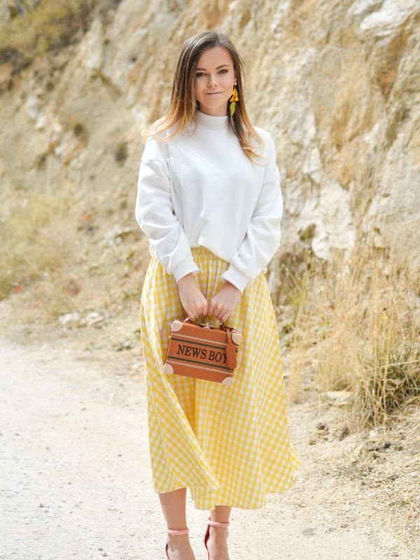 White short checkered T-shirt & skirt